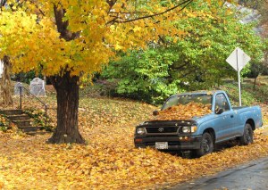 OK, another day. It’s gorgeous outside here and the leaves continue to dazzle and fall. I love the way this pickup is partially buried.