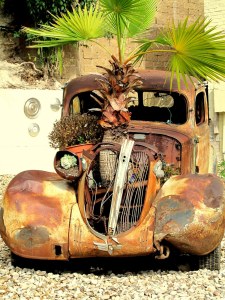 An odd selection, huh?? But I love the colors and design of this old jalopy in Austin, Texas. It’s in a group called “Oxidation is beautiful” on Flickr. This old car is now being used as a planter. ☺