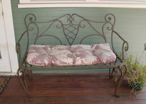 I bought this wrought iron bench at the coolest outdoor pottery store in Temecula, CA. A guy named Jack ran the place and always had Sinatra playing on the outdoor speakers. He was so laid back and nice. Jack had the best fountains and chimineas, among other things. I had to sell my bench before moving to the East Coast, as it would have rusted to death. But no worries, I found a good home for it.