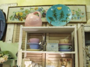 It was all I could do to keep from buying the pink pitcher and one of those cups and saucers. And aren’t the pink shutters in the background a nice touch?