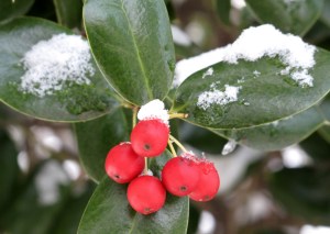 Well, we got our first snow this weekend and it’s kind of wet and gloppy and icy at the same time. I wasn’t quite ready for the cold after ten days in Spain and a week in Texas, but I’ll survive, I’m sure. What’s amazing is that my pot of geraniums is hanging on for mere life. I hope they make it until January at least. I think they’ll be OK if I keep them close to the house where they are.