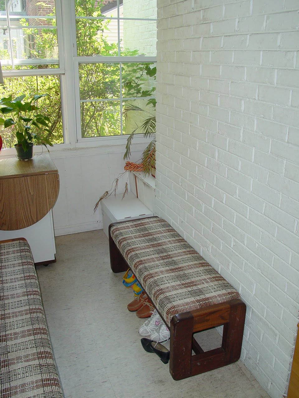 This is how the space looked before. It was basically a spot to store my stepdaughter’s shoes. The benches were freebies from a law office.