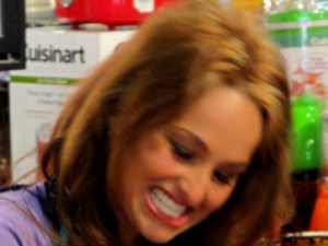 Today I had the pleasure of meeting Giada de Laurentiis at one of her book signing sessions. I have to admit to being starstruck–the whole thing is kind of a blur now. Giada has like twenty million teeth that are dazzlingly white, and perfect skin. She actually looks better in person! I mumbled something about loving her show, then asked her to sign a cookbook for my friend T. Which, of course, she did. The next thing I knew, we were out the door. They really move things along. I hope I meet her again so I can carry on an actual conversation.