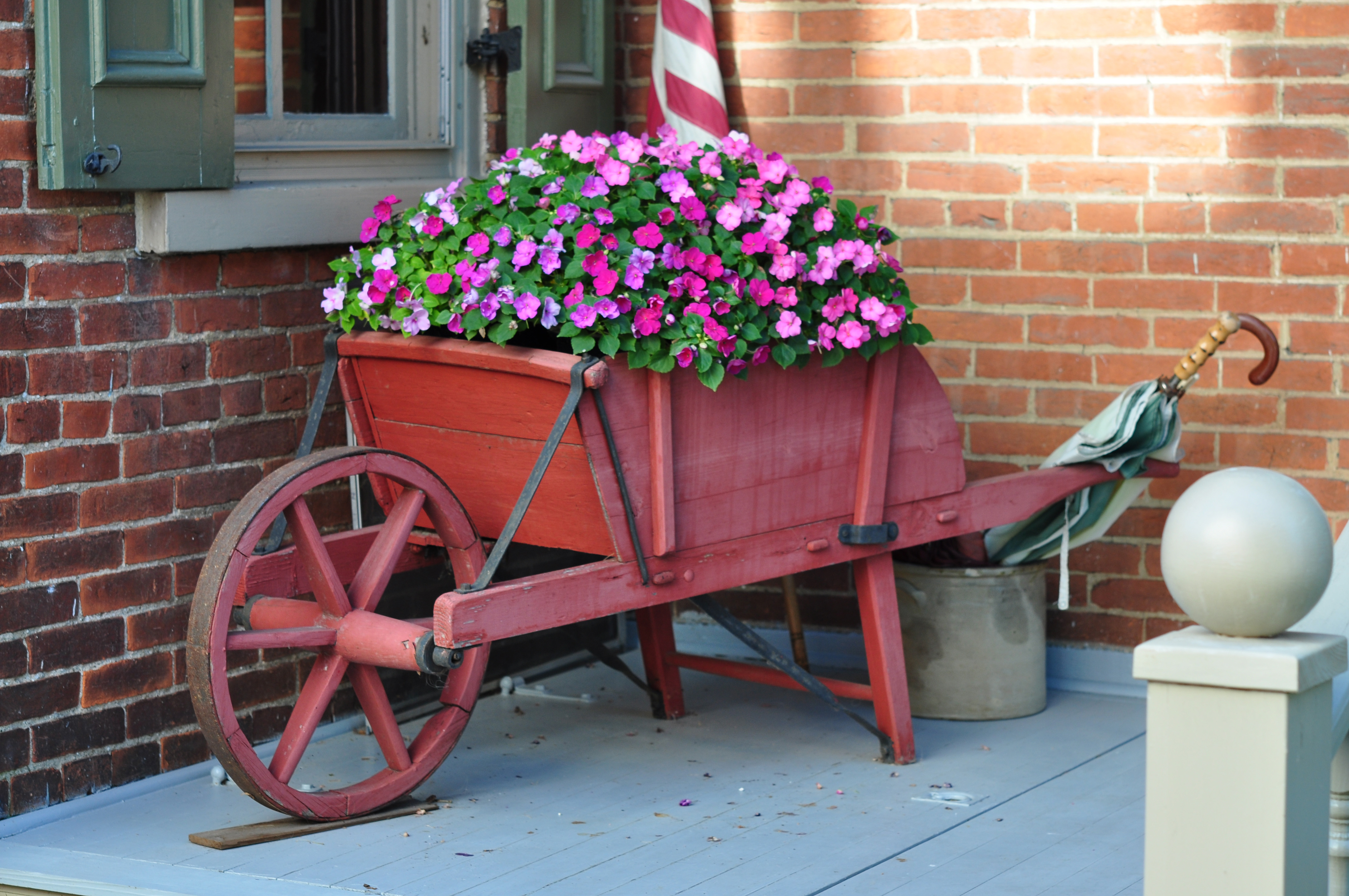 I used at least three textures on this until I got it to look the way I wanted. Found this little “flowerbox” on a stroll through Strasburg, PA. The two pink flowers are geraniums, but I’m not sure what the others are.