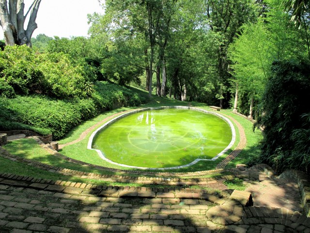 No, your monitor’s not messed up. The water really looks that green. It’s a limestone pool at Dumbarton Oaks, and the cherub or putto is made of lead. I imagine there’s a bit of algae in there too.