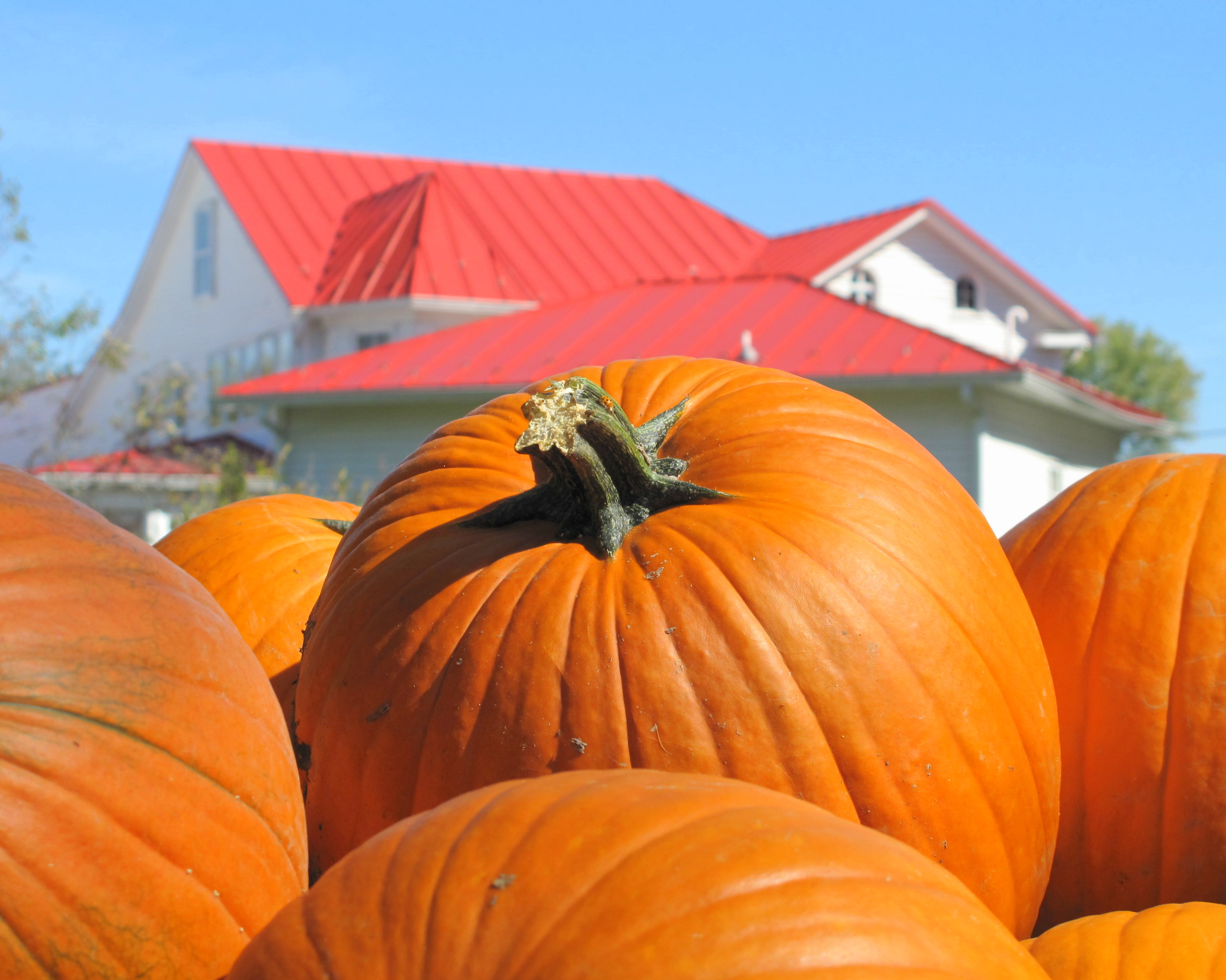 As I mentioned yesterday, Mr. Prose and I went to Sugarloaf Mountain, with a stop at the coolest pumpkin stand. It’s called Comus Market and is located across from the Comus Inn, a lovely place to eat (red roofs in background.) Did you believe me when I said they had blue-gray pumpkins? Well, here’s proof: