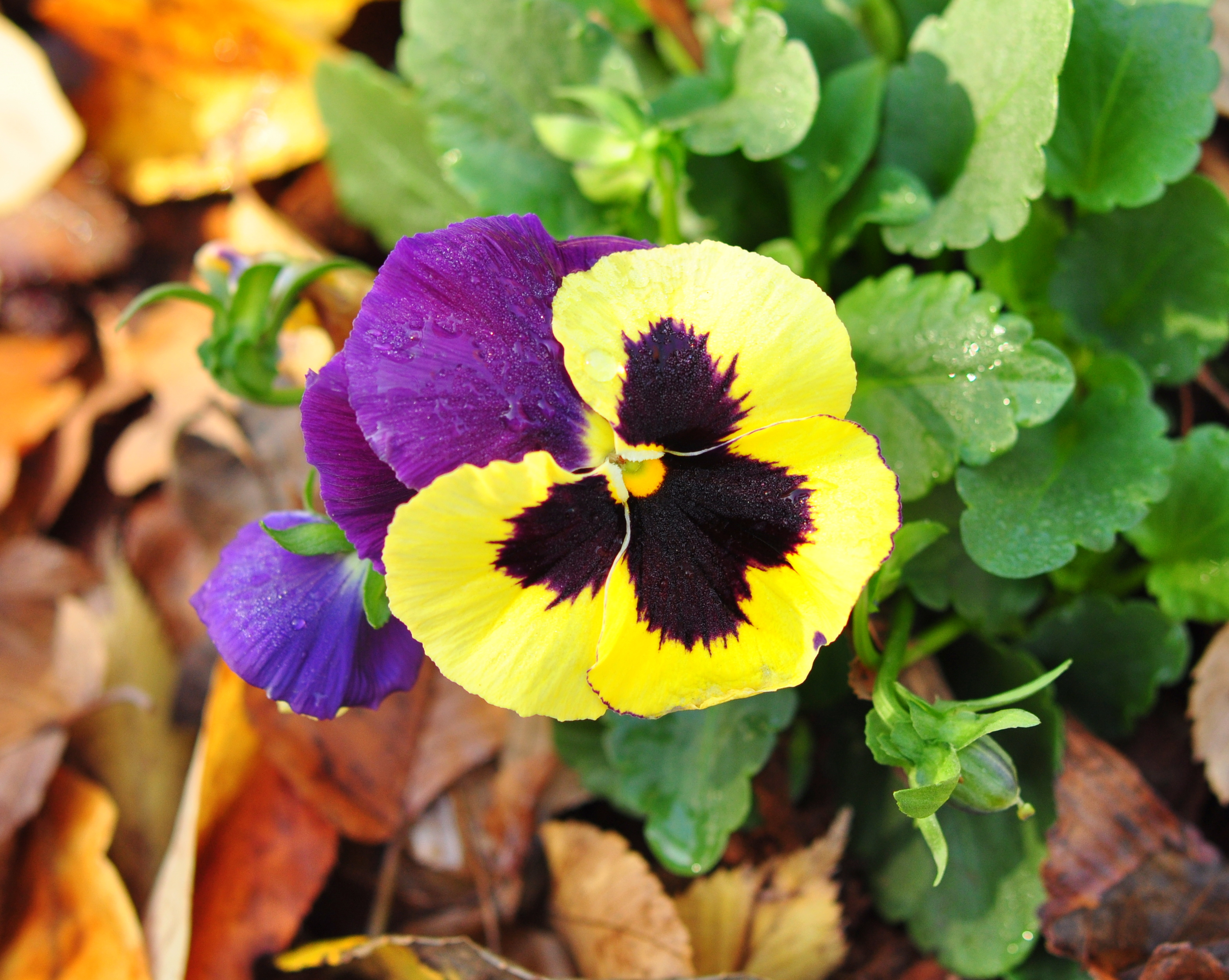I almost missed these pansies because of all the leaves. They’re so bright and cheerful, aren’t they?