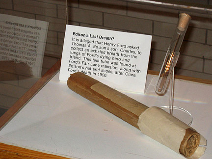 Believe it or not, Ford captured Edison’s last breath in a glass tube and it’s in the Dearborn museum: