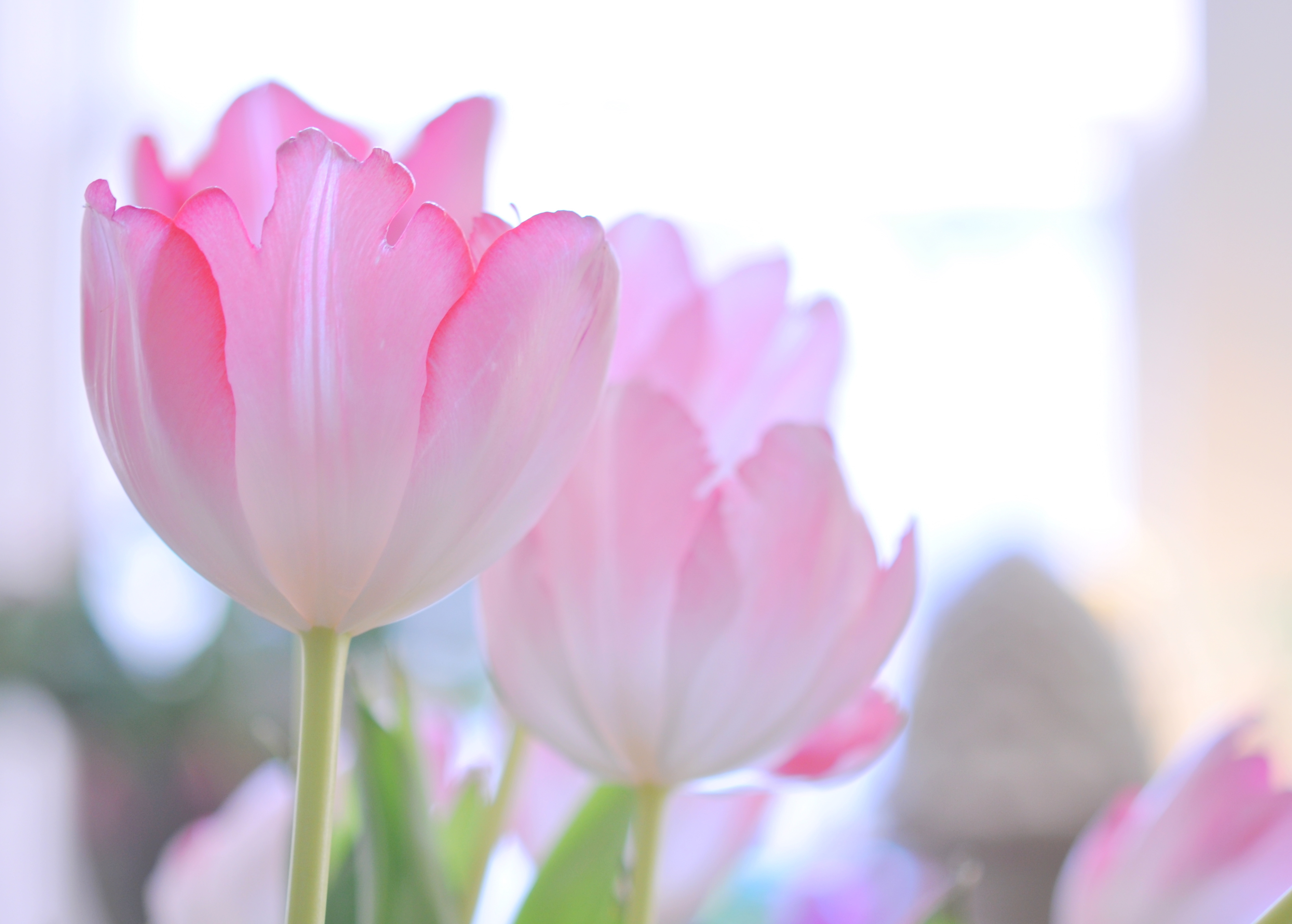 Another shot of my “candy cane” tulips. It’s hard to believe they were almost red and white when I bought them. Each day they got more and more pale, and finally ended up looking like cotton candy.