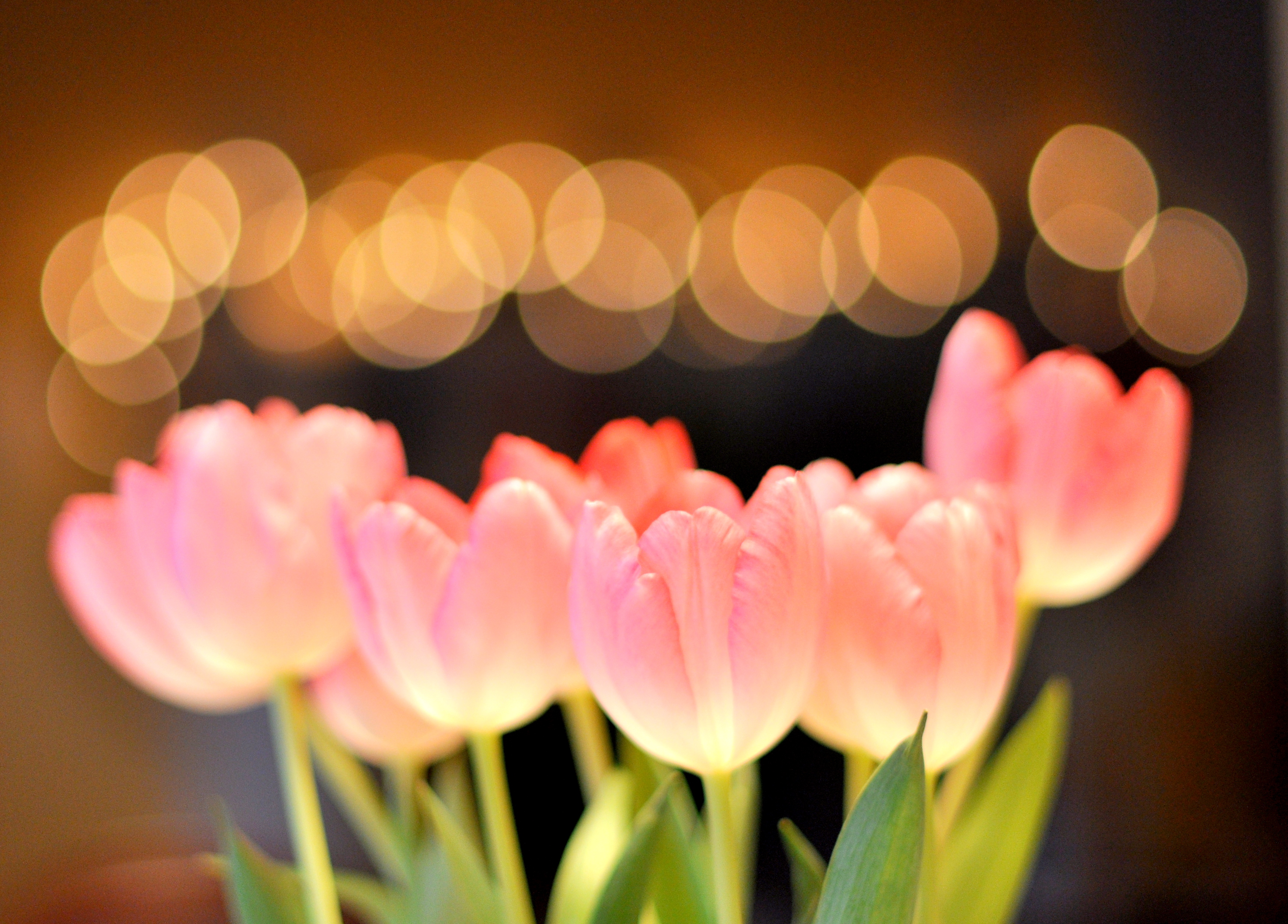 On New Year’s Eve day, I needed a photo for my 365-day project, but didn’t feel like opening the champagne eight hours early and ruining it for the sake of photography. Club soda just didn’t do the trick because it went flat too quickly, so I settled on some tulips and bokeh “bubbles” created by Christmas lights….