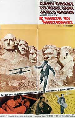 Alfred Hitchcock’s North by Northwest was filmed around Mount Rushmore. According to Wikipedia, Hitchcock “wanted to do a chase across the faces of Mount Rushmore. The scene was not actually filmed at the monument, since permission to shoot an attempted killing on the face of a national monument was refused by the National Park Service. The film incorrectly depicts a forested plateau and the house of the villain atop the monument.” It’s a great movie starring Cary Grant.