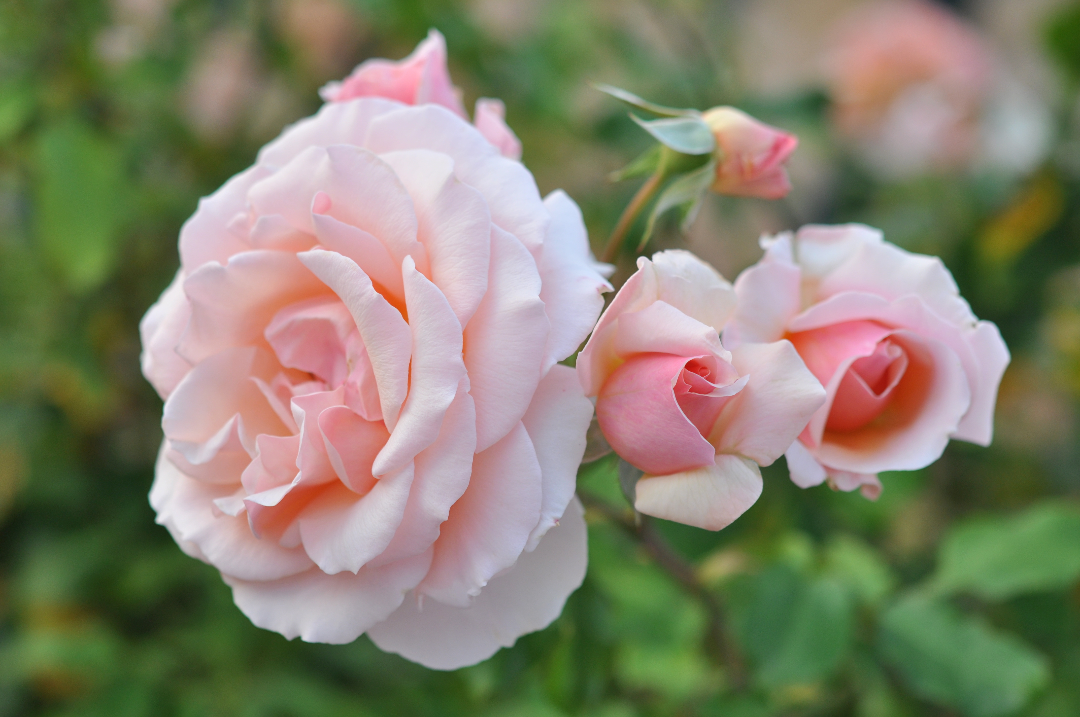Last night after dinner, I noticed that the peach-colored rose bush was in full bloom. The light was catching them just so, and they were fairly begging to be photographed. I put down the iPhone, pushed aside the iPad and pulled out the Nikon.