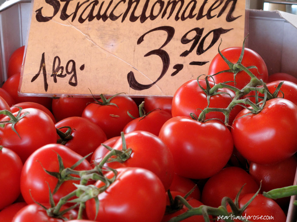 Strauchtomaten means “tomatoes on the vine.” Aren’t they beautiful? It was hard to see such delicious produce and not be able to buy any.