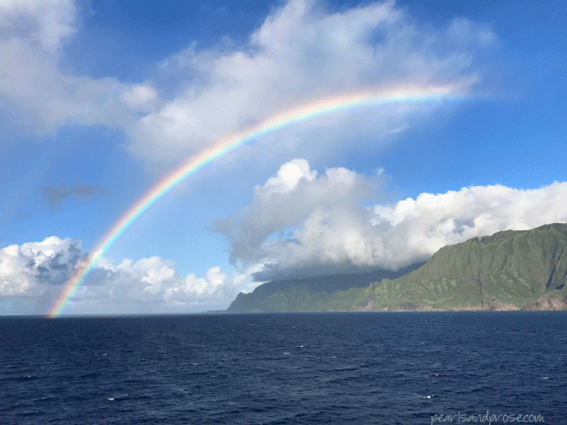 Wow – what an exceptional way to end your cruise – I’ve never seen a partial rainbow and then watch it ‘grow’ . . . totally cool !