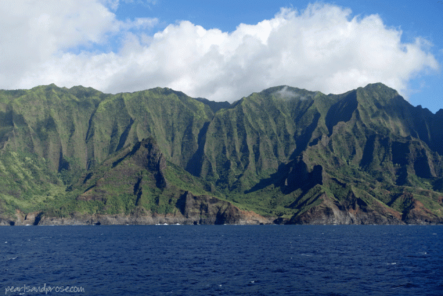 At the end of our cruise in Hawaii, the ship lingered at the Na’Pali Coast on Kauai, one of my favorite places in the world….