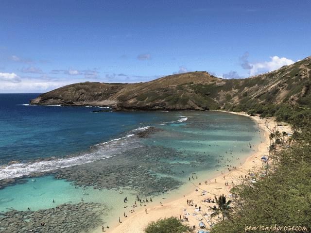 One of my favorite spots on Oahu was Hanauma Bay. We made a brief stop to take photos from above….