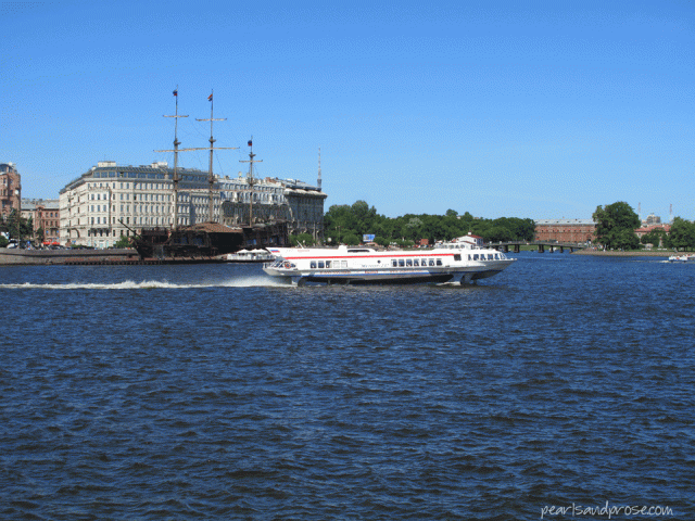 After visiting Peterhof Palace, we returned to the city of St. Petersburg via hydrofoil. We were hoping to do that at some point and the trip did not disappoint.