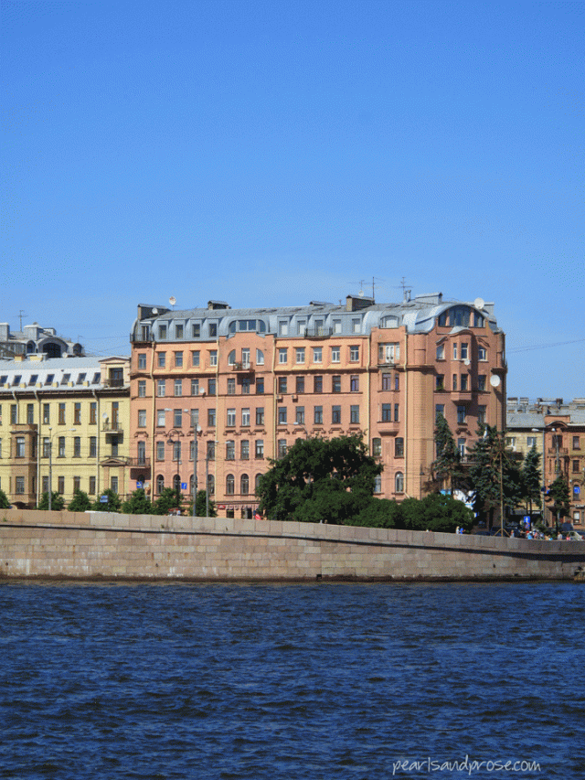 A closer look at the salmon-colored building. I love the architecture and colors of St. Petersburg so much.
