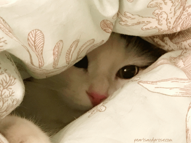 • I am so careful to watch that tail of his because I know he’s bothered if it starts twitching. He will even pretend to bite me right after purring.