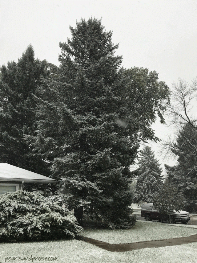 After so many years in Southern California, I wasn’t really prepared for a snowfall in October. This is how it looked the afternoon before I left: