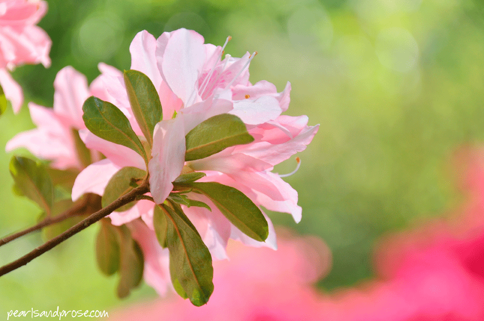 This photo makes me want to get out the oil paints. It has a painterly quality that I really like. I do miss East-Coast azaleas…we have them in California, but they’re small and not that great.