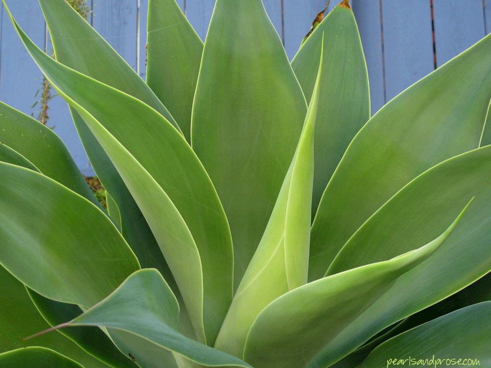 Not sure what this succulent is–maybe a type of aloe? Anyway, I like the combination of the blue fence and the green plant.