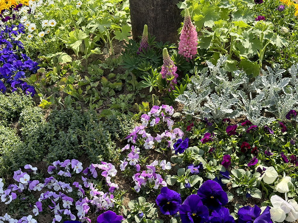 Pansies, Dusty Miller, Daisies and Lupines.