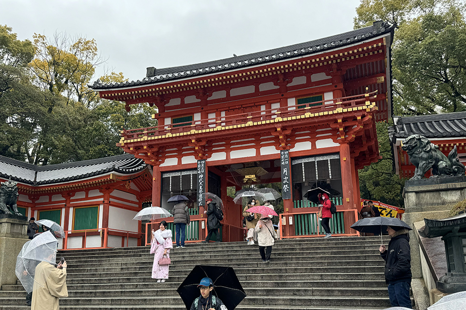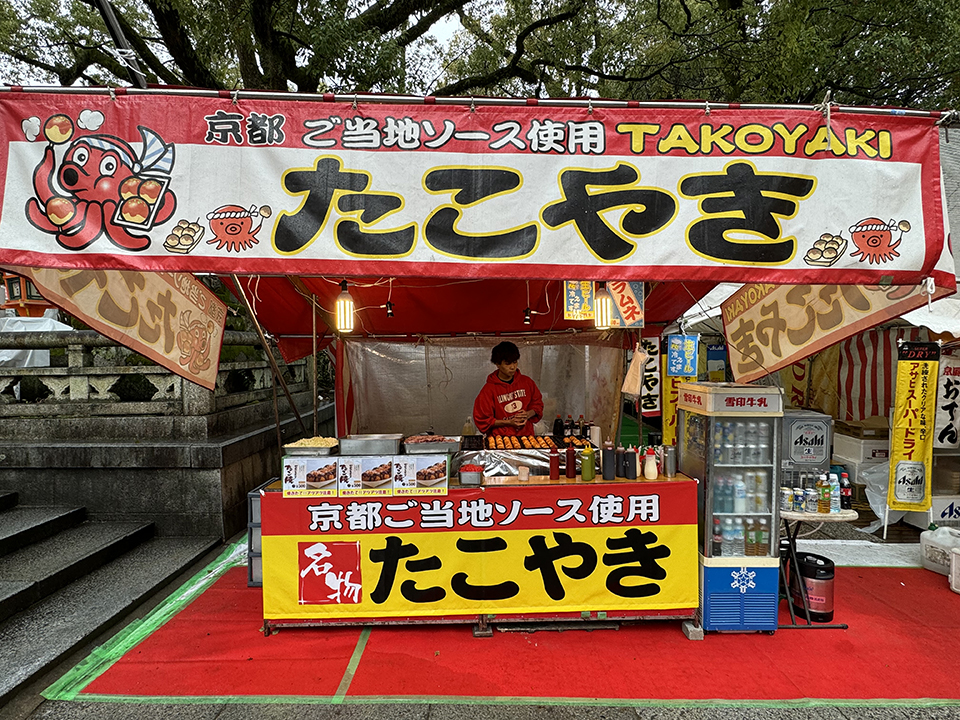 Yasaka-jinja Shrine is one of the most religious spots in Kyoto, so it was kind of a suprise that food vendors set up over there.