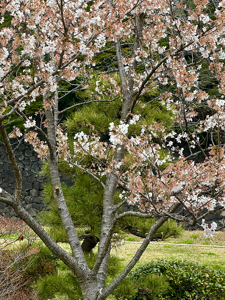 We were able to wander around the grounds, however. I’m not sure what this tree is, but I think it might be a Kwanzan cherry tree. Those were the only cherry blossoms we saw, alas.