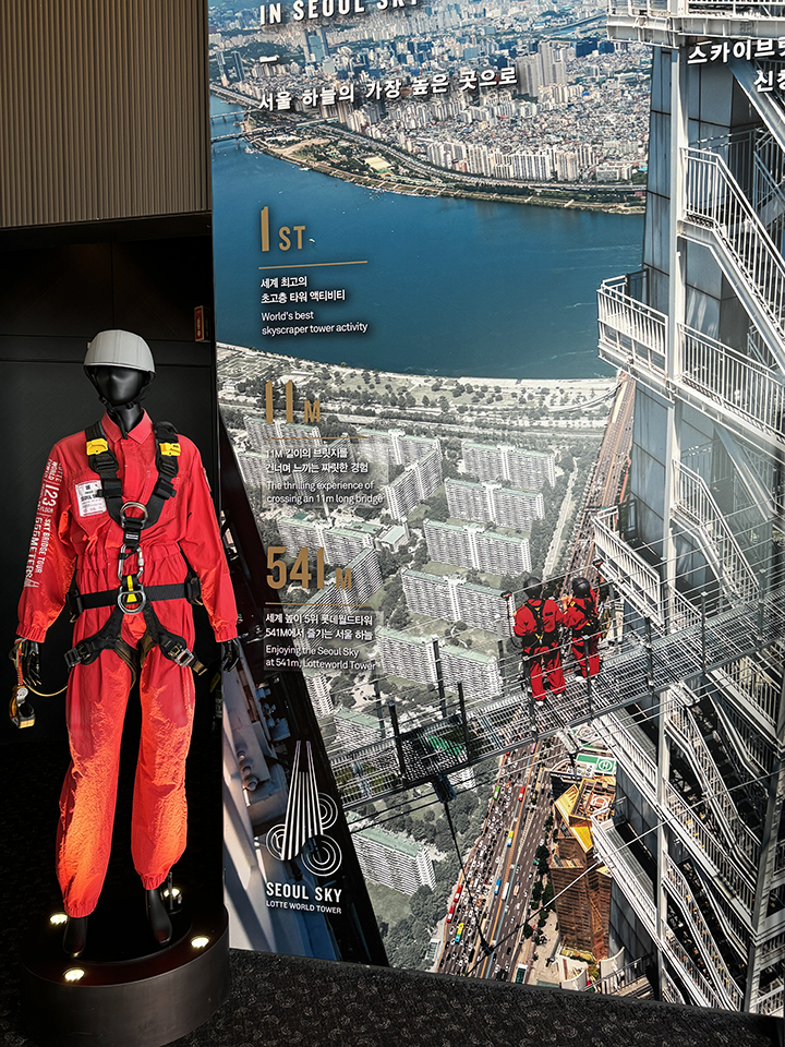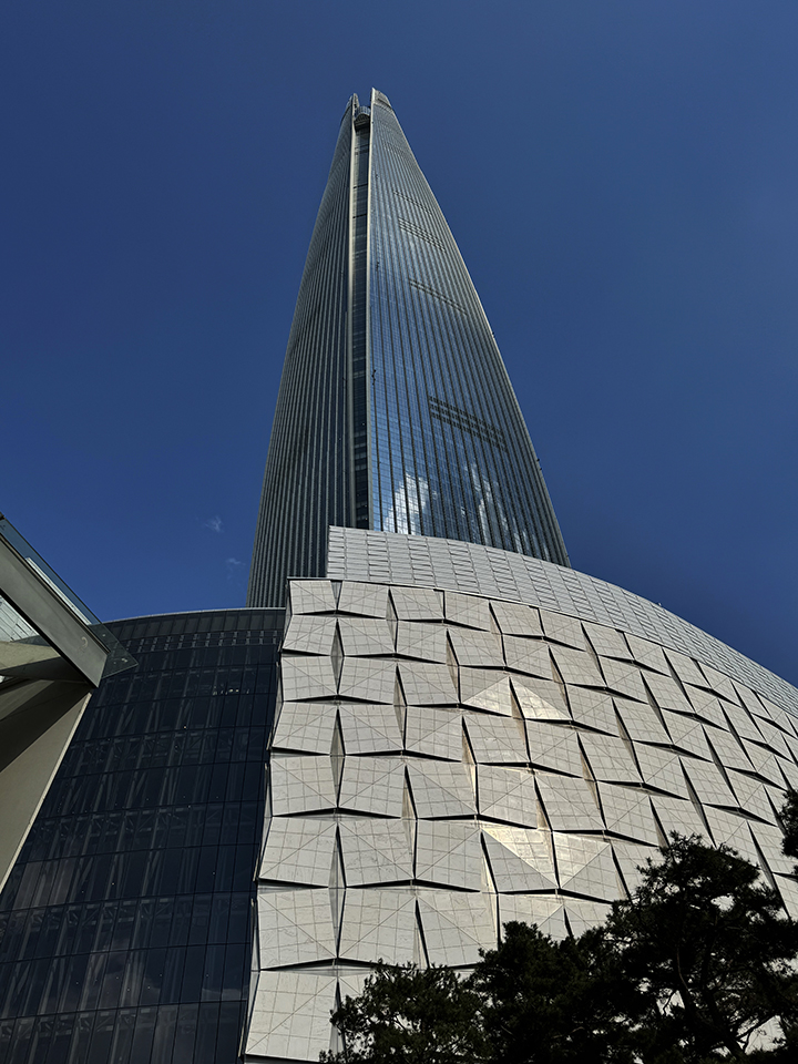 Lotte Tower is a 123-story tower that is 1821 ft. (555 m.) high. To go up you have to first enter a luxurious mall.